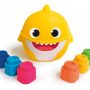 Një kub argëtues në formën e një peshkaqeni të vogël, plot me blloqe të buta Clemmy për të ndërtuar,