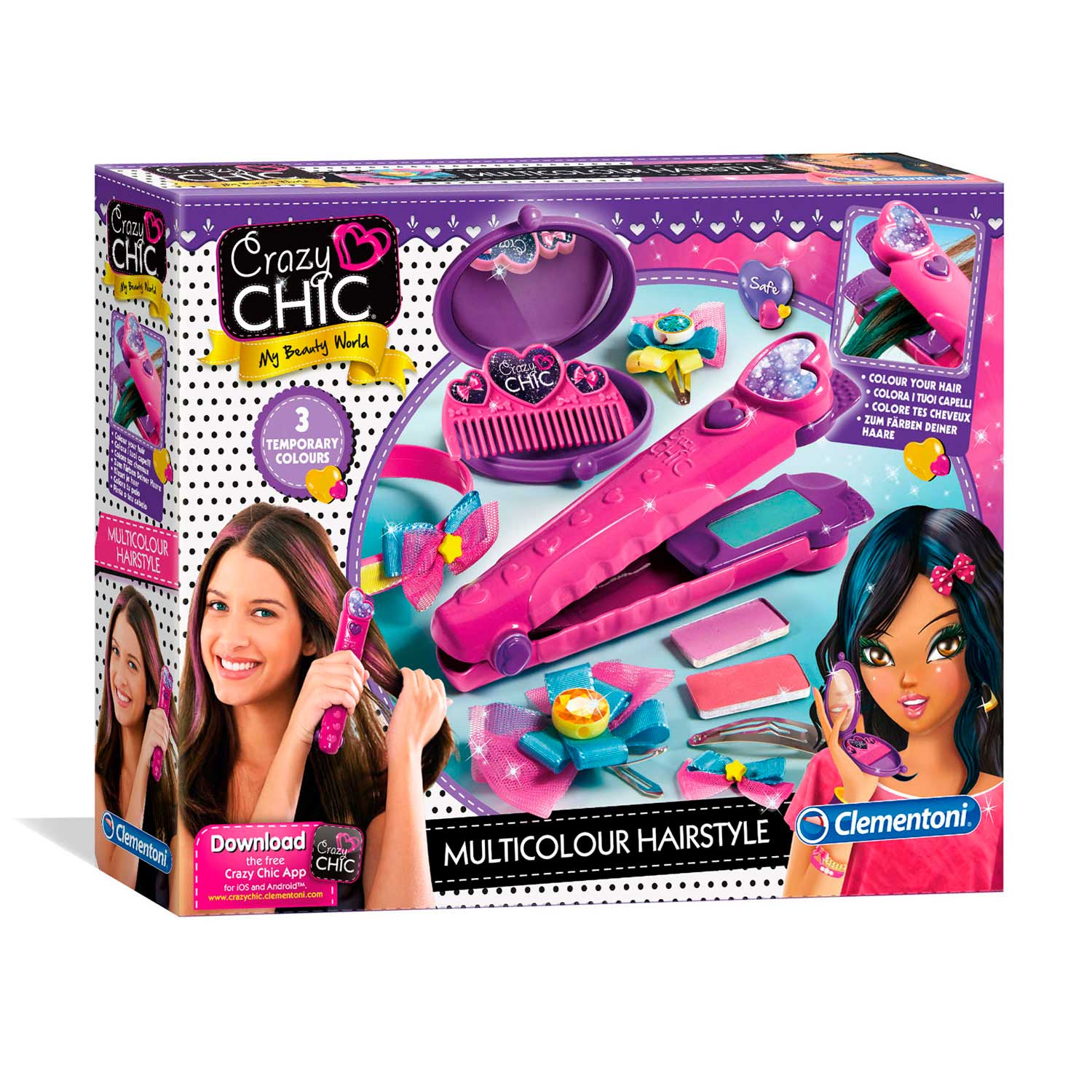 Përfshin një krehër, pasqyrë dhe aksesorë flokësh shumëngjyrësh për një pamje të vërtetë të Crazy Girl!